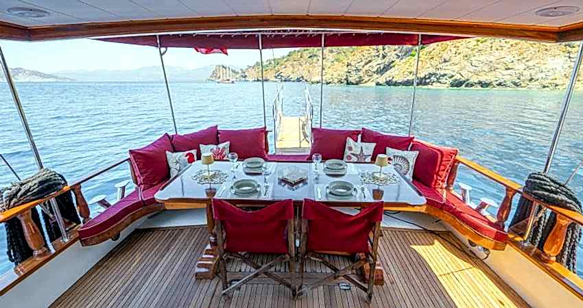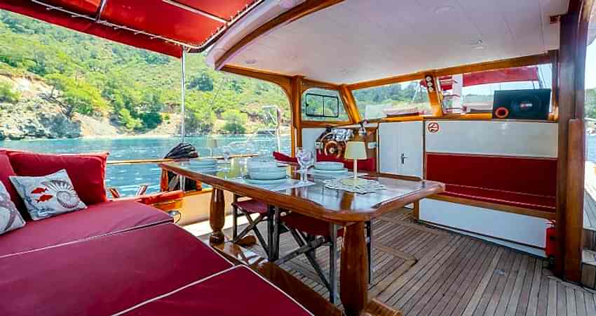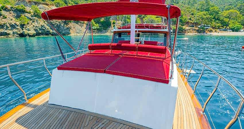 ✓12 Metre Uzunluk ✓4 Metre Genişlik ✓Yemek Masası ✓Yüzme Merdiveni ✓Güneşlenme Güvertesi ✓Gölgelik Alan