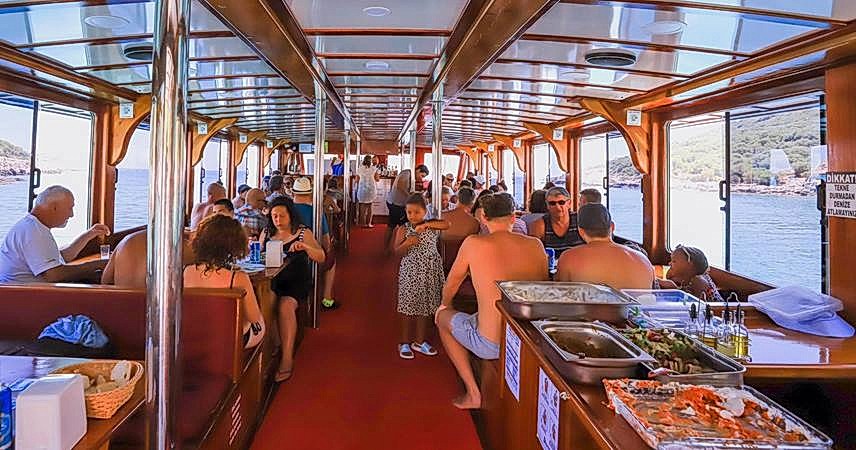 Tekne turu süresi boyunca siz değerli misafirlerimizi oldukça keyifli ve konforlu bir gün beklemektedir. Kalabalık plajlardan ve şezlong kapma yarışlarından uzak olarak teknemizin üst katında bulunan güneş yataklarında dilediğinizce güneşlenebilir ve turunuzun keyfini çıkarabilirsiniz. Teknemizin içerisi oldukça geniş ve konforludur. Misafirlerimizin keyifli vakitler geçirmesi için de içerisinde alanlar bulundurmaktadır.