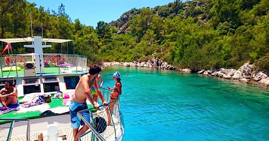 Bu tekne turu programımız katılım gösteren tüm misafirlerine unutulmaz bir gün sunan, kara ile ulaşımı olmayan noktalara ulaşıp buradaki el değmemiş doğa içerisinde keyifli saatler geçirmeye olanak sağlamaktadır. Popüler tatil beldelerinin beraberinde getirmiş olduğu kalabalık plaj gibi sorunların içerisinde bulunmadığı, keyifli, huzurlu bir gün yaşamak istiyorsanız sizleri de bu tekne turu programımıza bekliyoruz. 7’den 70’e tüm misafirlerimize hitap eden tekne turumuz ailenizle de arkadaşlarınızla da katılım gösterebileceğiniz turlarımızdandır.
