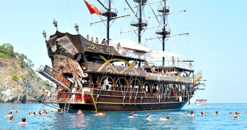 Kemer Korsan Tekne Turu boyunca sizleri nelerin beklediğini kısaca özetlemek gerekirse; Dışarıdan korsan gemisini andıran ihtişamlı gemimize adımınızı attığınız andan itibaren sizleri doyasıya müzik ve dans karşılıyor olacak. Bunun yanında Kemer’in nefes kesici güzelliği en çok ortaya koyduğu eşsiz koylarını gezerek hem muhteşem manzaralar ile karşılaşacağız hem de berraklığı ile ünlü Kemer denizinin en güzel bölgelerinde yüzeceğiz.