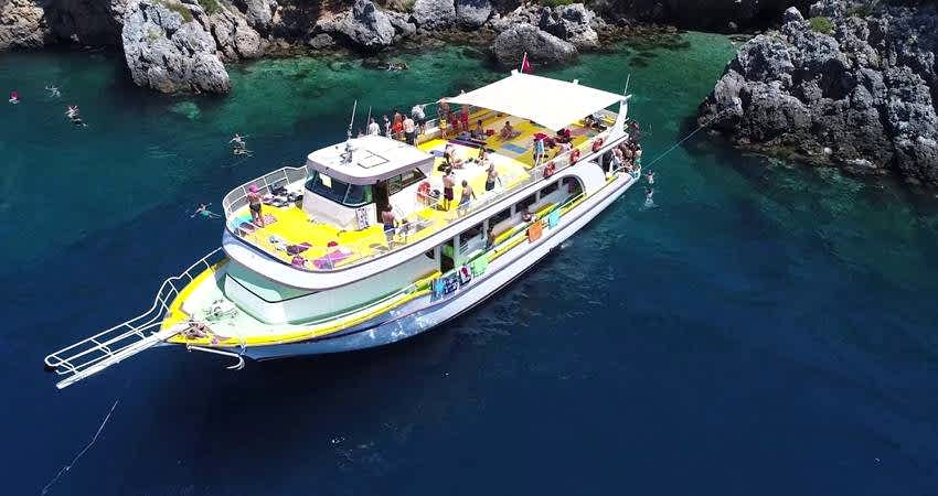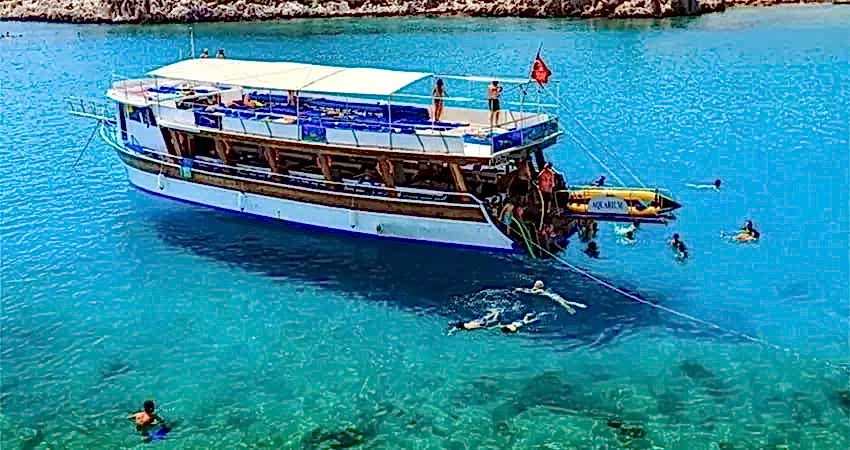 Turumuz sizleri otellerinizden alıp teknemizin önünde buluştuğumuzda başlar. Burada sizleri güler yüzlü takım arkadaşlarımız karşılayarak sizleri teknemize davet etmektedirler Tüm misafirlerimizin alana ulaşması ve teknemize yerleşmesinin ardından ise teknemiz siz değerli misafirlerimize unutulmaz bir gün yaşatmak adına limandan hareket etmektedir.